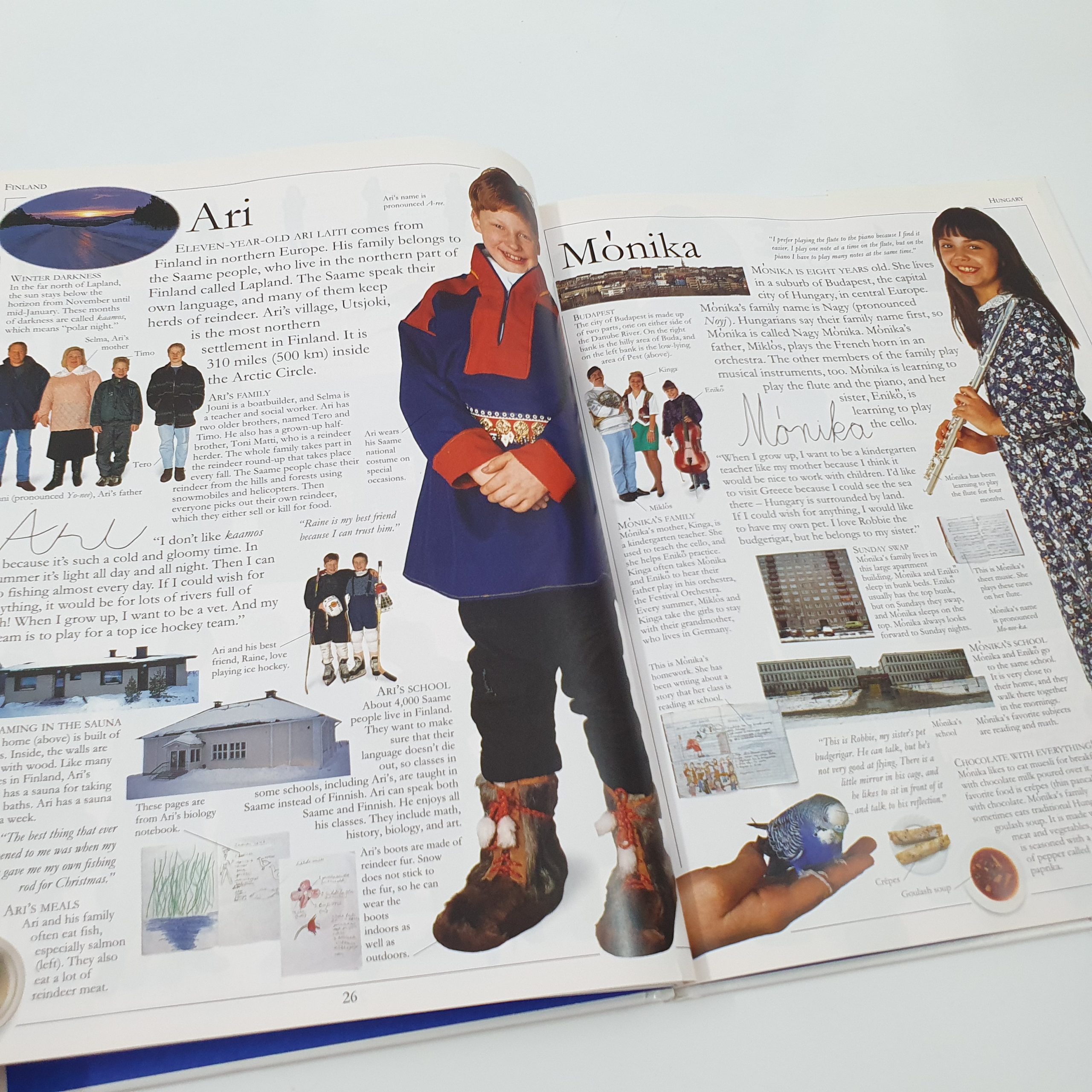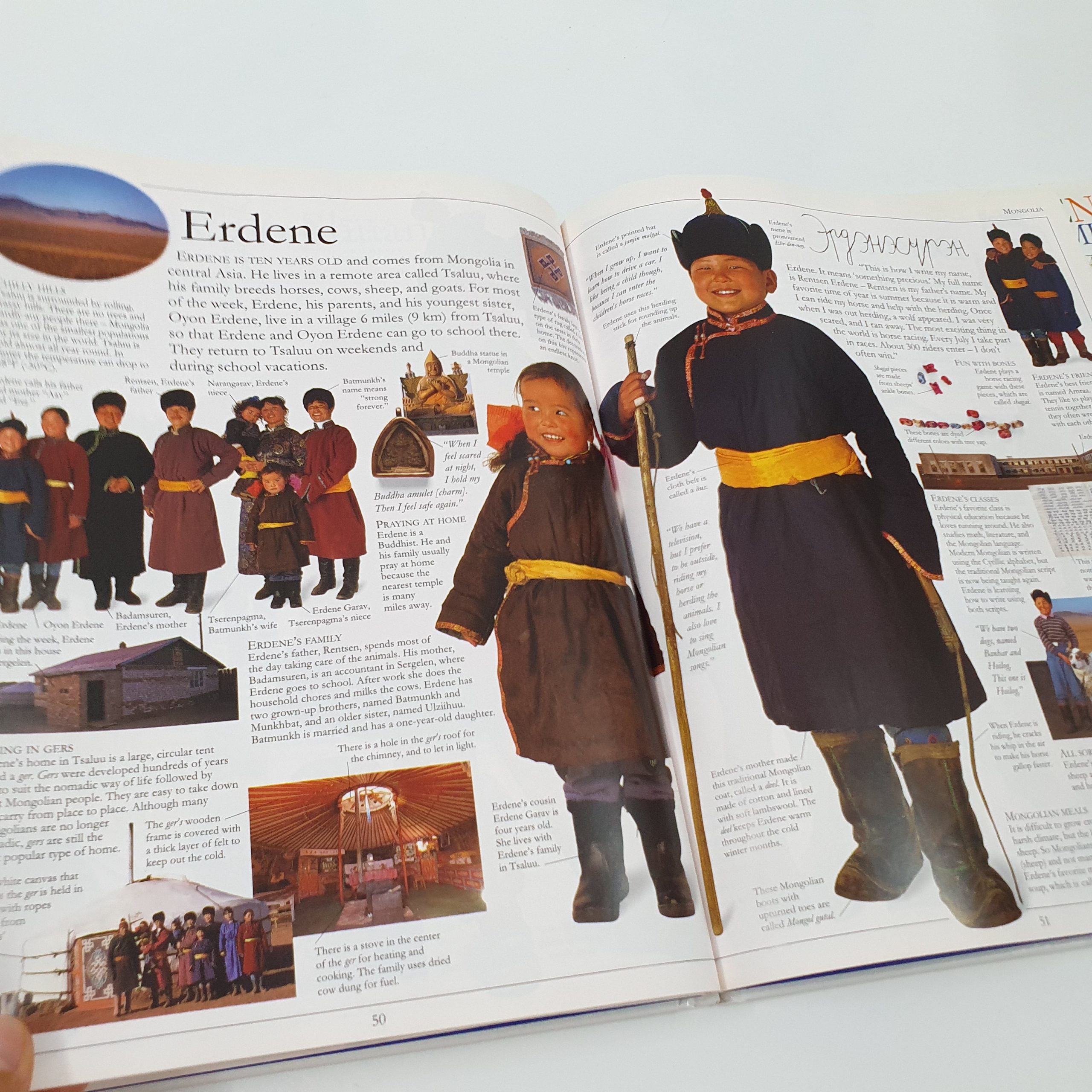 The children live in places as diverse as New York, Mongolia, and the Amazon Basin. These are children from both industrialized and developing nations, children from busy cities and remote rural communities, and children from tribal cultures. Their environments include mountains, deserts, rain forests, plains, and polar regions. Most live in families, but Suchart, a novice monk, lives in a monastery, and Tadesse, an Ethiopian boy, lives in an orphanage. Children everywhere will enjoy reading about the lives of these children who share their world.