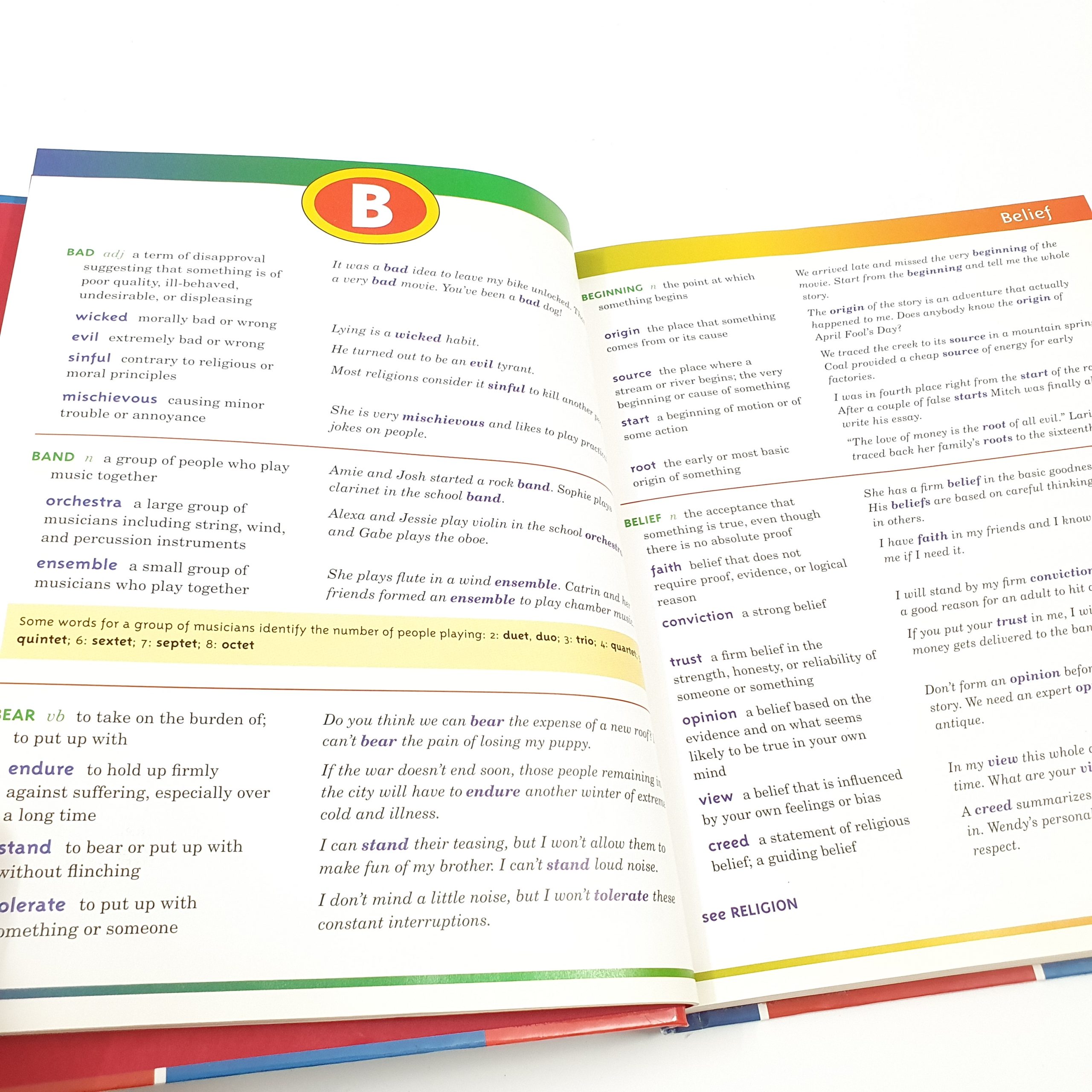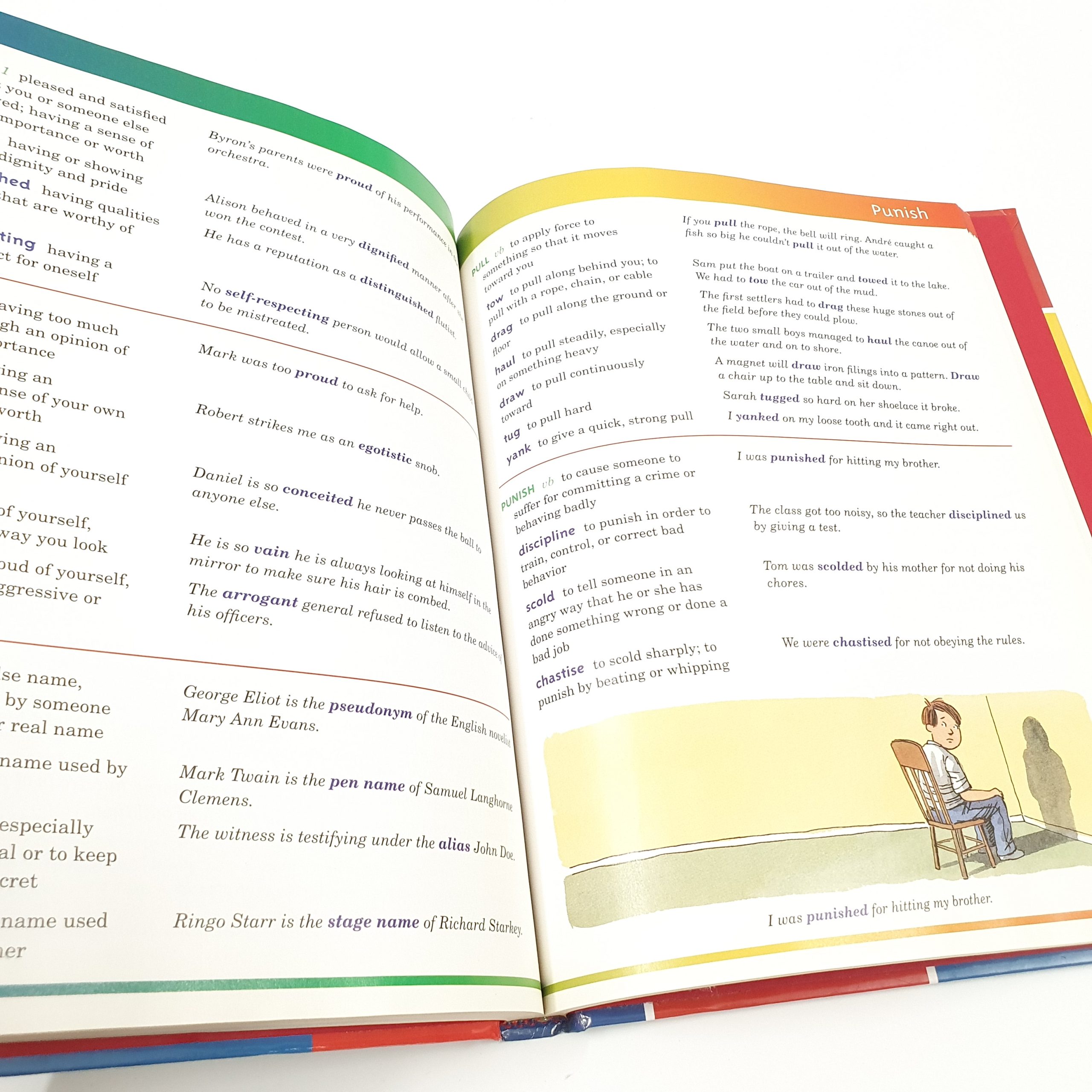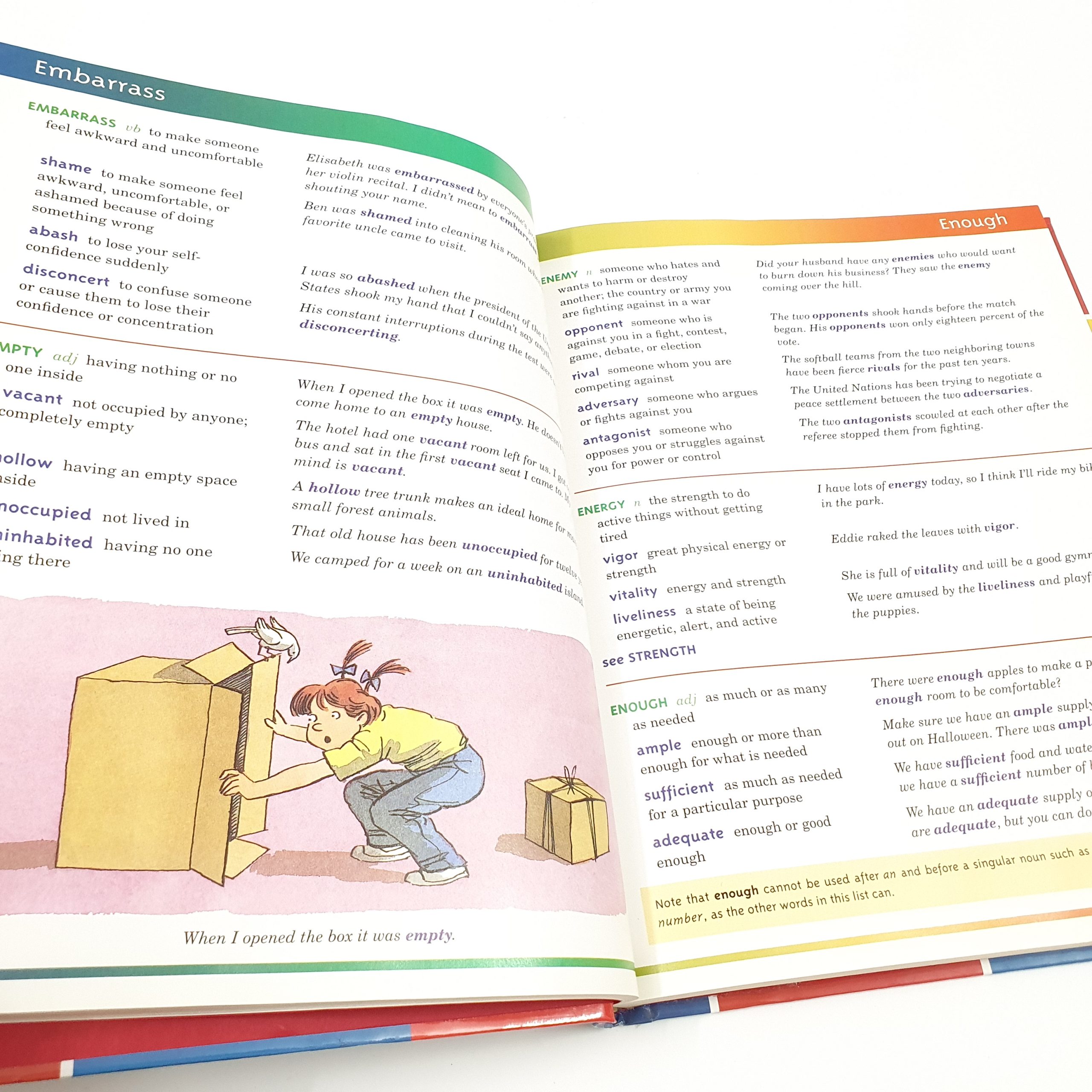 Designed for children ages nine to thirteen, an attractive, illustrated thesaurus defines more than five hundred headwords and 2,500 synonyms, provides example sentences for each synonym, and includes an extensive cross-referencing index.