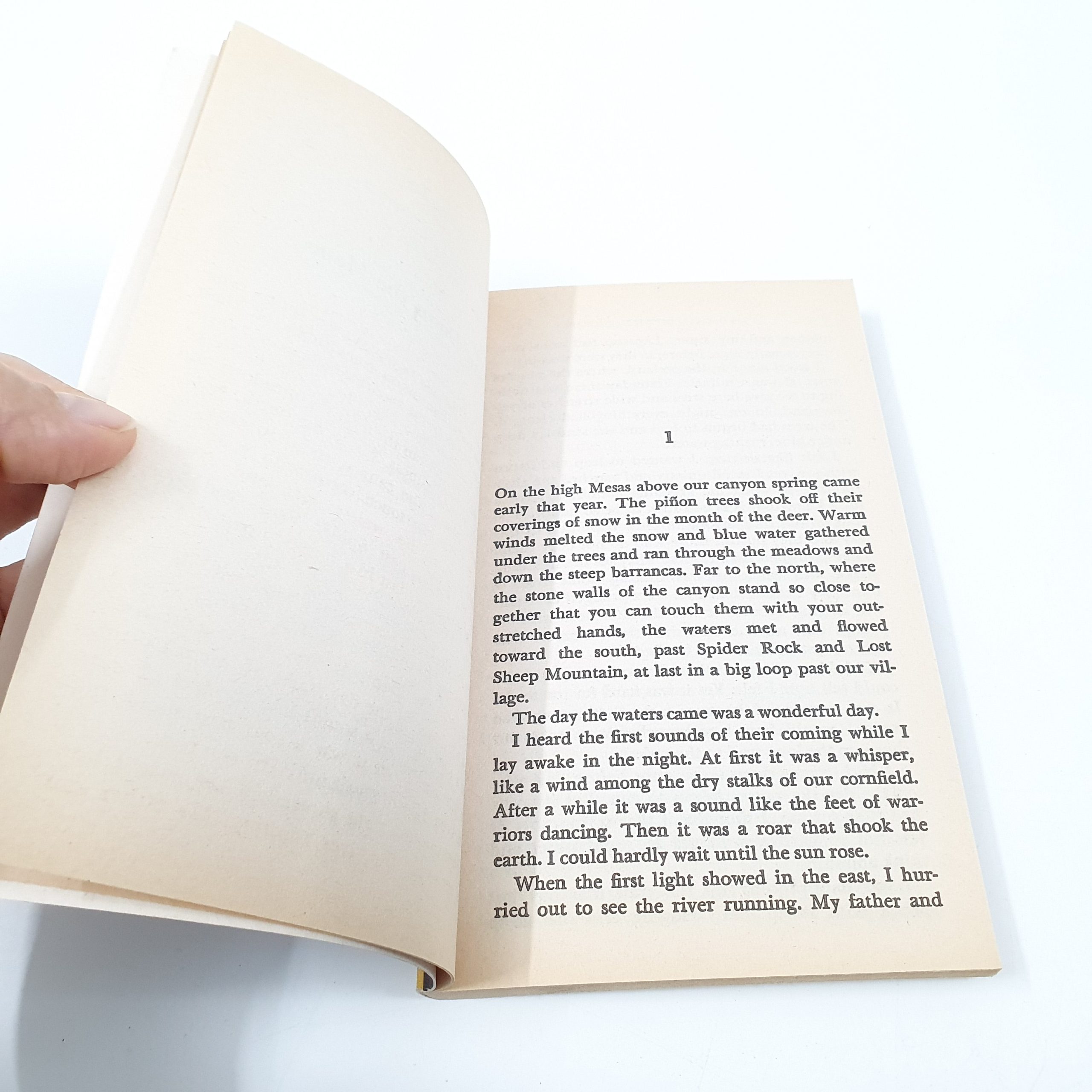 The Spanish Slavers were an ever-present threat to the Navaho way of life. One lovely spring day, fourteen-year-old Bright Morning and her friend Running Bird took their sheep to pasture. The sky was clear blue against the red buttes of the Canyon de Schelly, and the fields and orchards of the Navahos promised a rich harvest. Bright Morning was happy as she gazed across the beautiful valley that was the home of her tribe. She tumed when Black Dog barked, and it was then that she saw the Spanish slavers riding straight toward her.