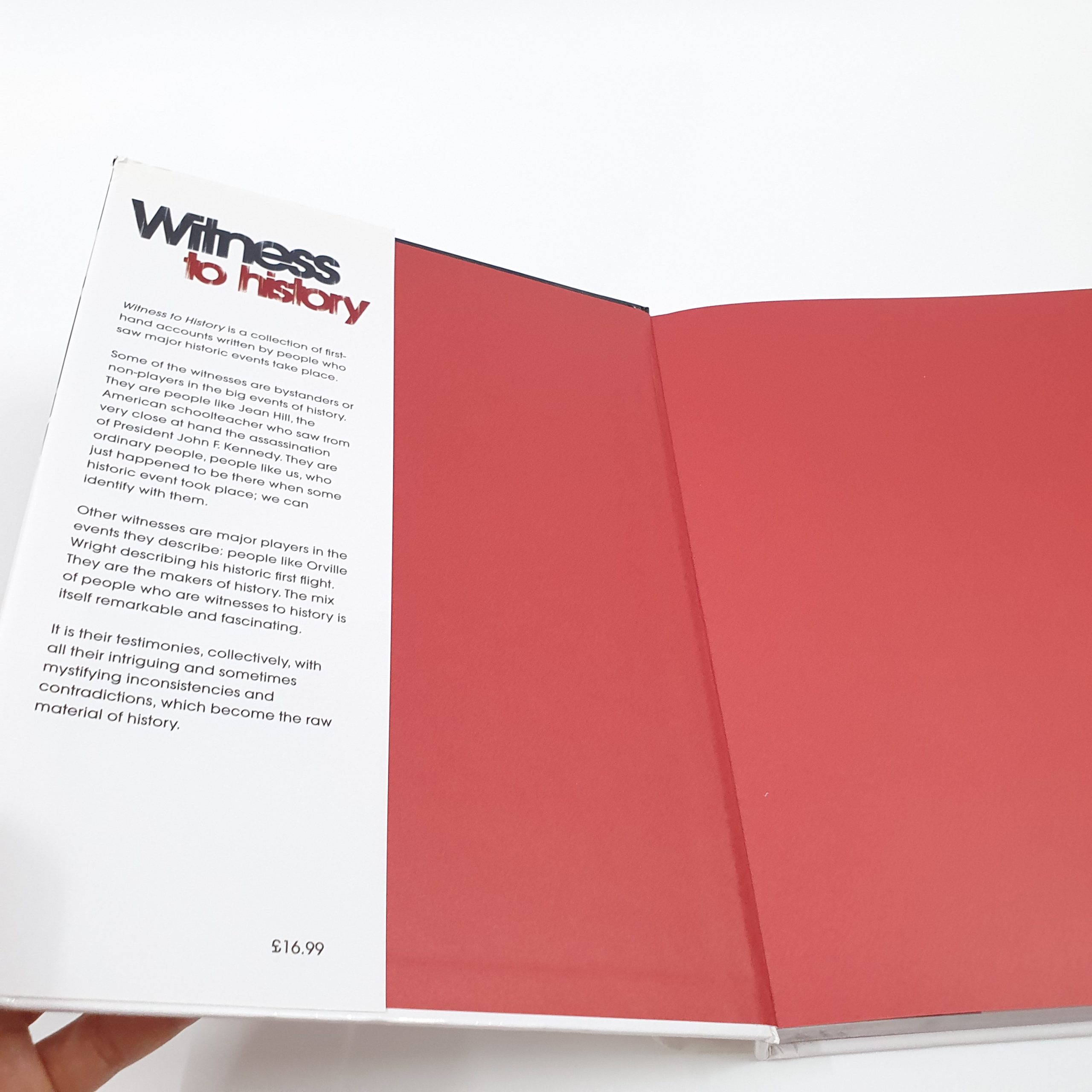 If time travel were to become possible, most people would choose to visit a significant moment in history. They could witness the first powered flight, Julius Caesarโs assassination in ancient Rome, or the discovery of Tutankhamenโs tomb. These are just a few of the events described in Witness to History . Witness to History is a collection of first-hand accounts written by people who saw major historic events take place. Some of the witnesses were bystanders or non-players in the big events of history. People like Jean Hill, the American schoolteacher who saw the assassination of President John F. Kennedy at close range. They are ordinary people, people like us, who just happened to be there when a world-changing event took place. Other witnesses were major players in the events they describe. Orville Wright describes his historic first flight. They are the makers of history. The mix of people who witness events that become our shared history is both remarkable and fascinating. The collective testimonies of these spectators, with all their intriguingโand sometimes mystifyingโinconsistencies and contradictions become the rough draft of the past. Few of us will ever find ourselves in the right place at the right time. Witness to History puts you, the reader, in the privileged position of being thereโwithout the danger it often entails.